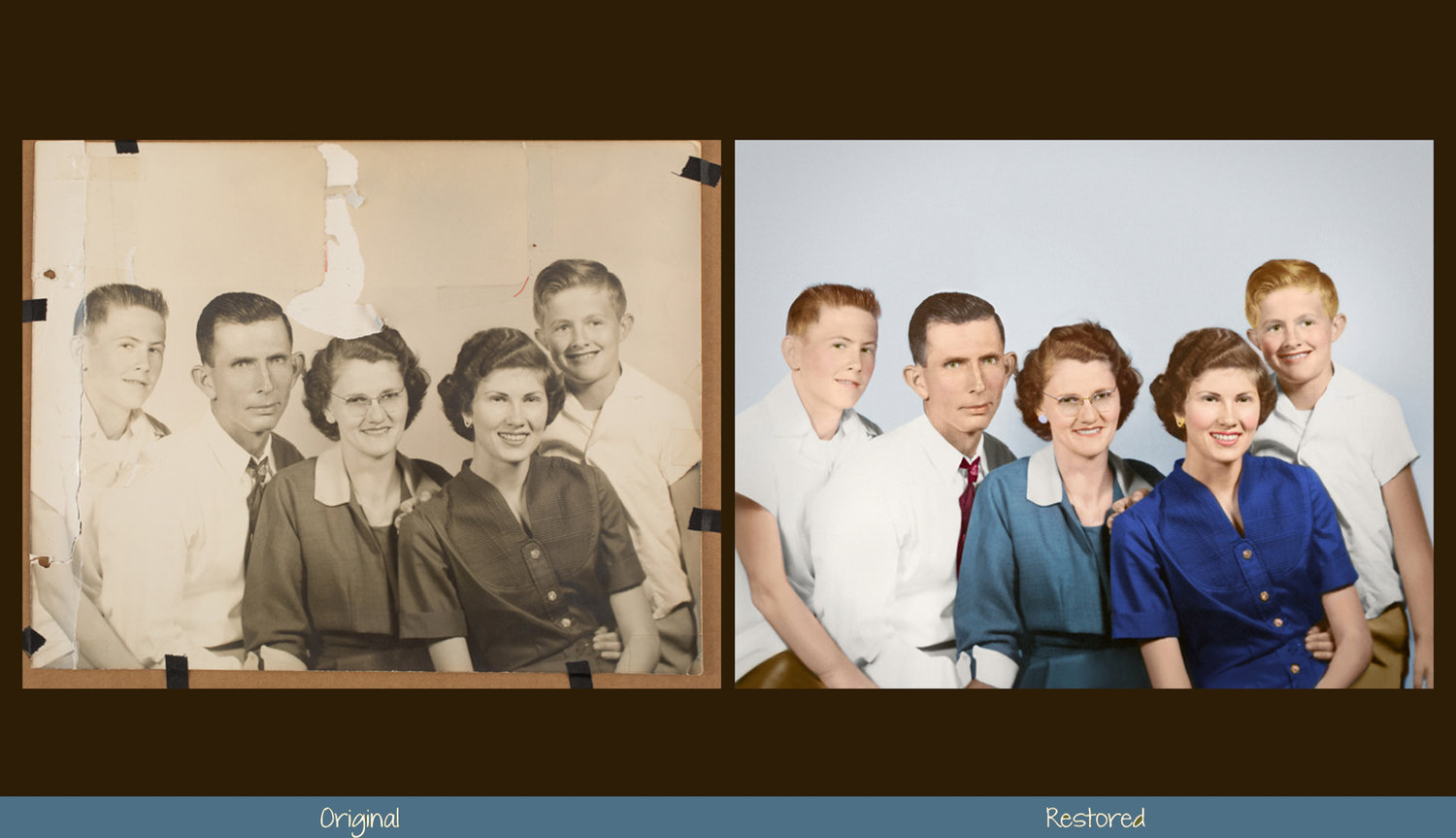 Bring us your photographs or artwork that are discolored, torn, faded, parts missing, even out-of-focus, and we’ll make them beautiful again.